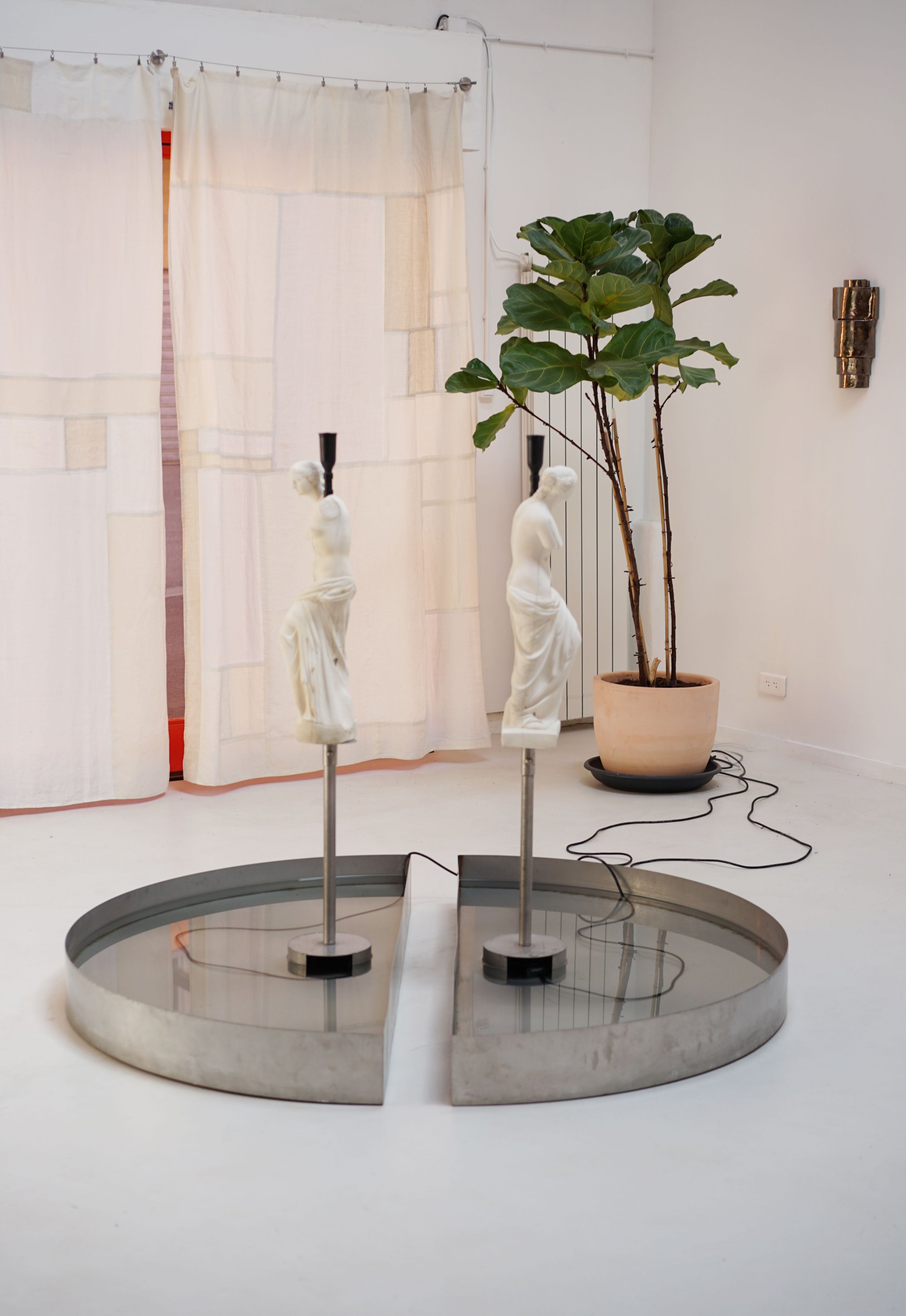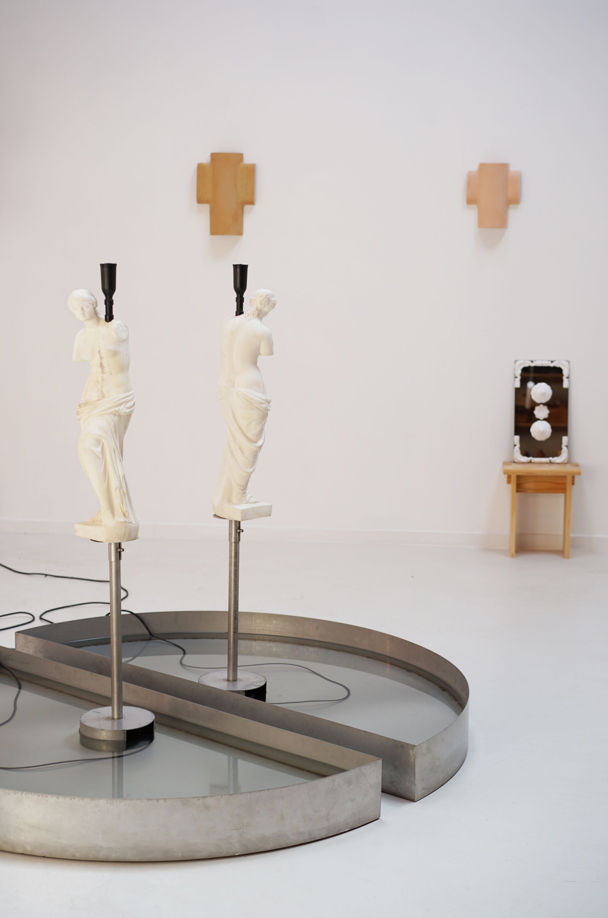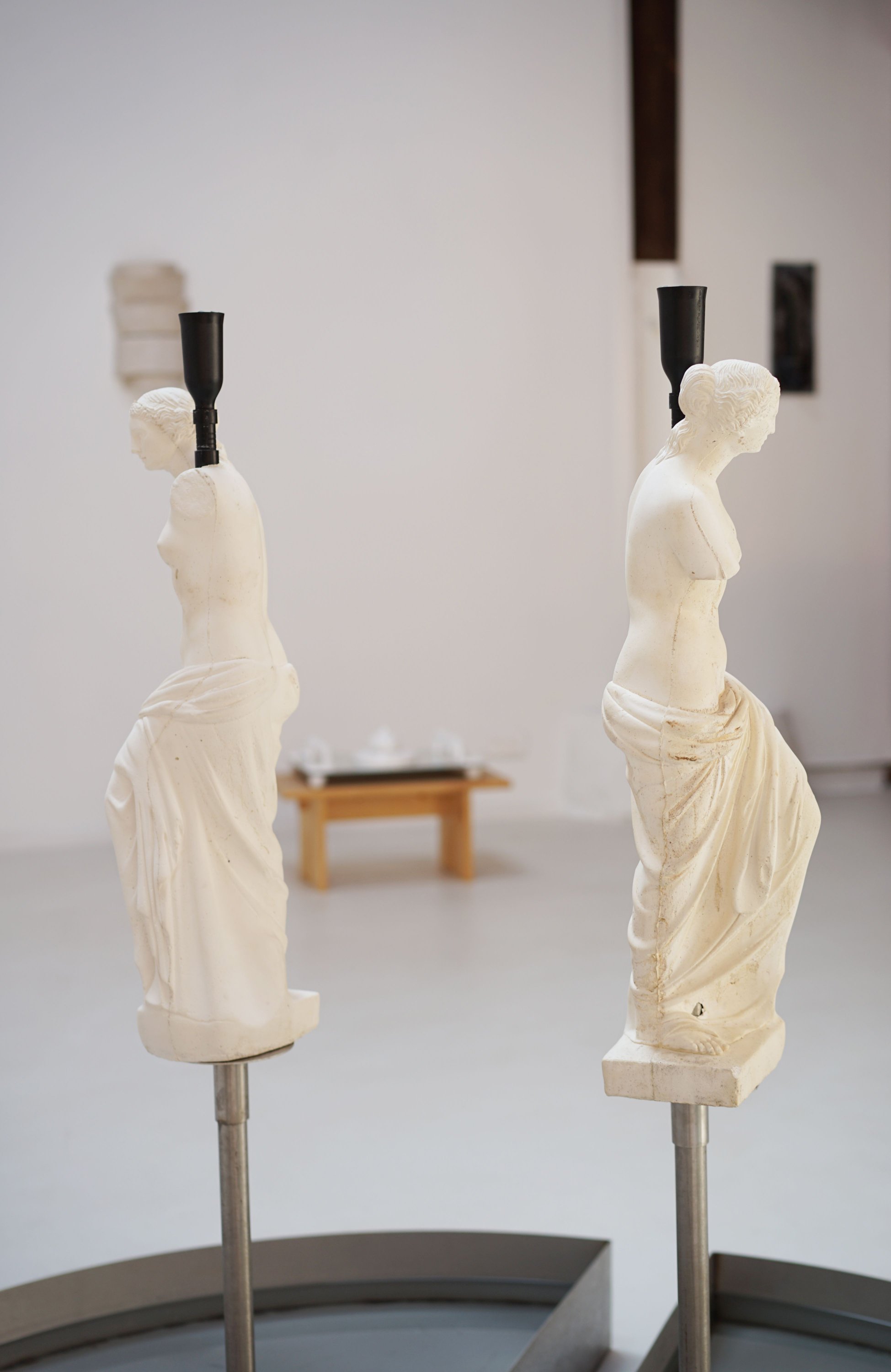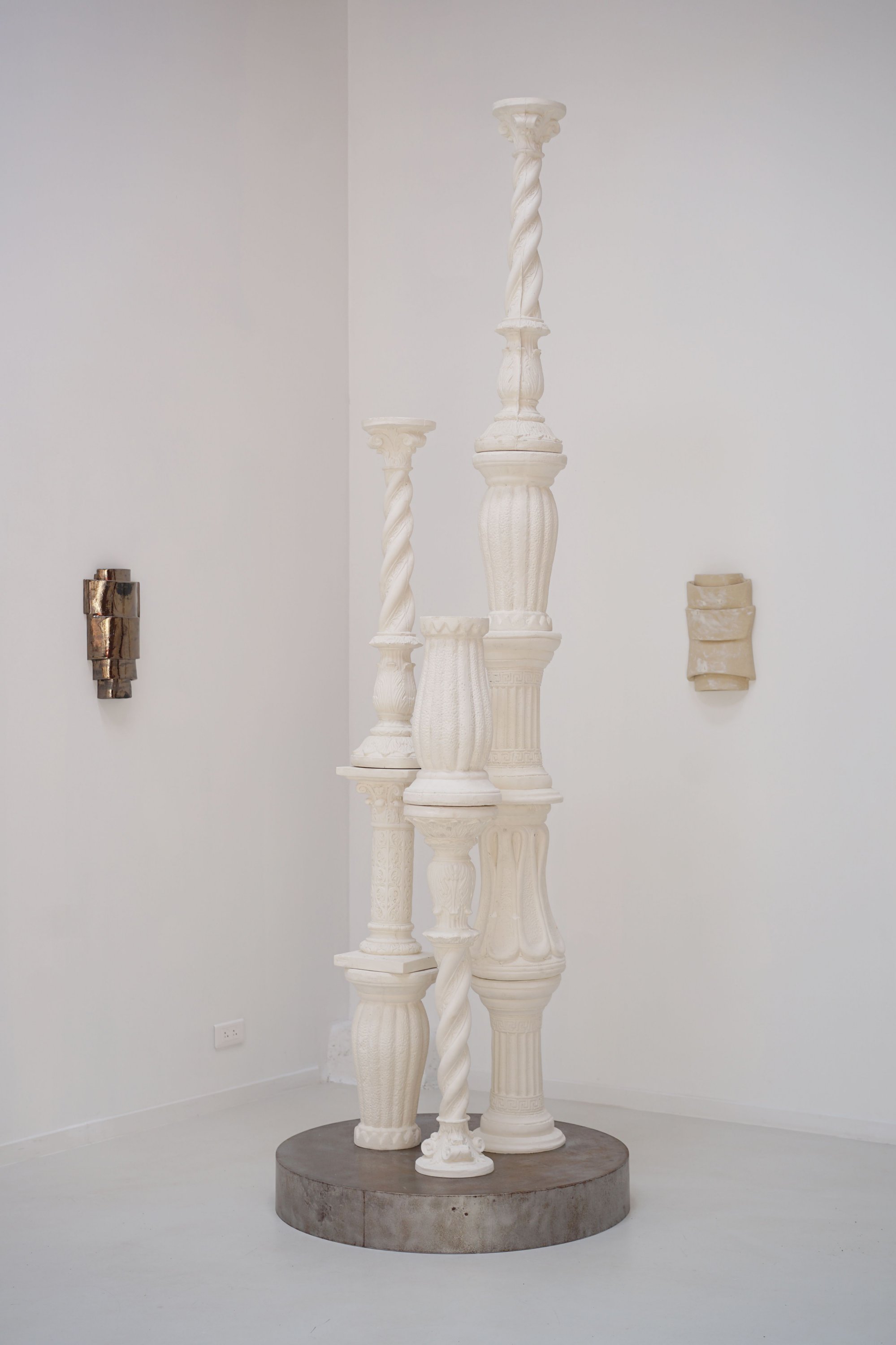 En composant ses sculptures et ses installations à partir de moulages de copies d'éléments décoratifs et architecturaux (colonnes, socles de fontaines, rosaces...), Cyril Zarcone pose un regard sur le déploiement de formes qui, à travers leur reproduction industrielle, imprègnent notre culture visuelle.