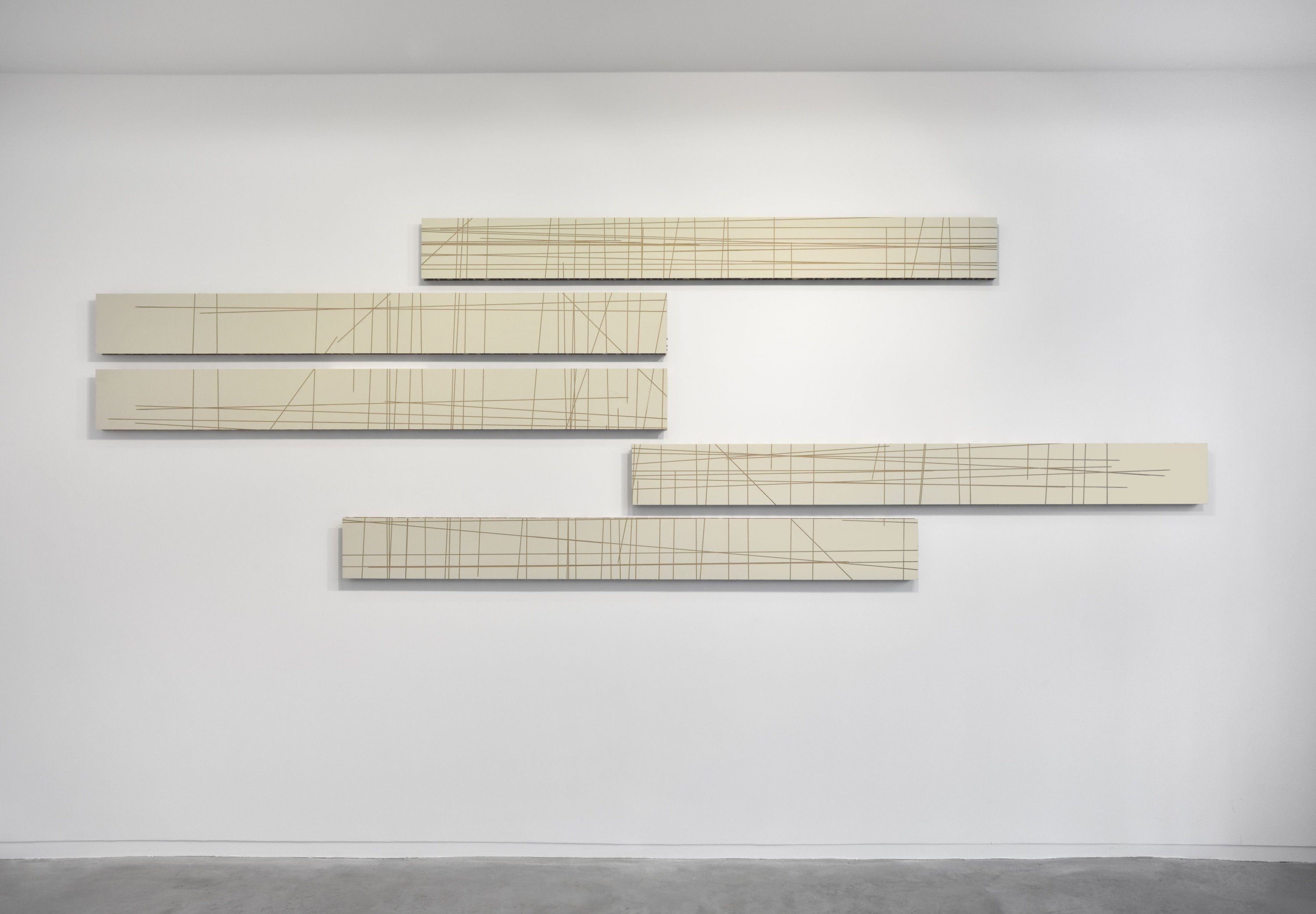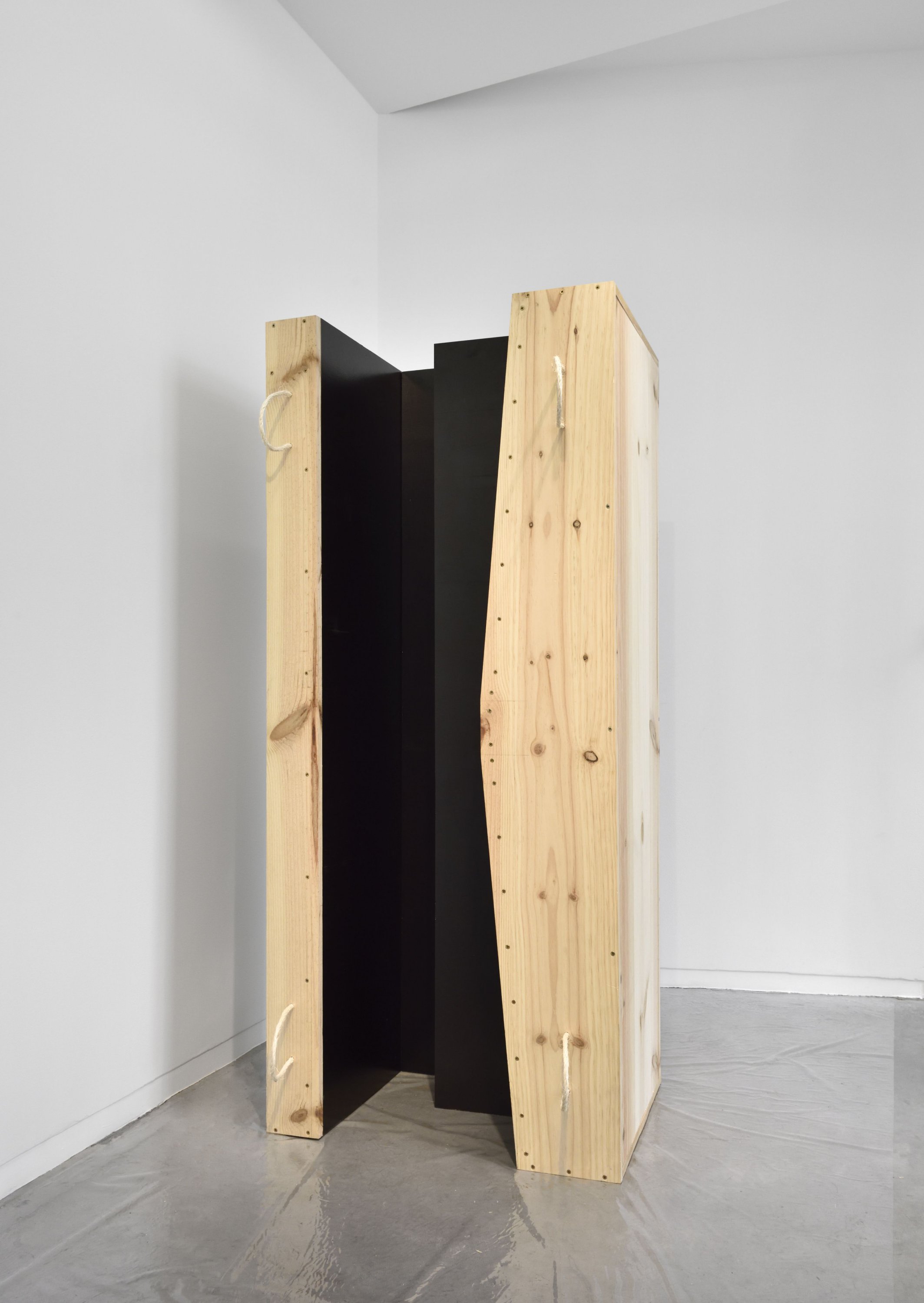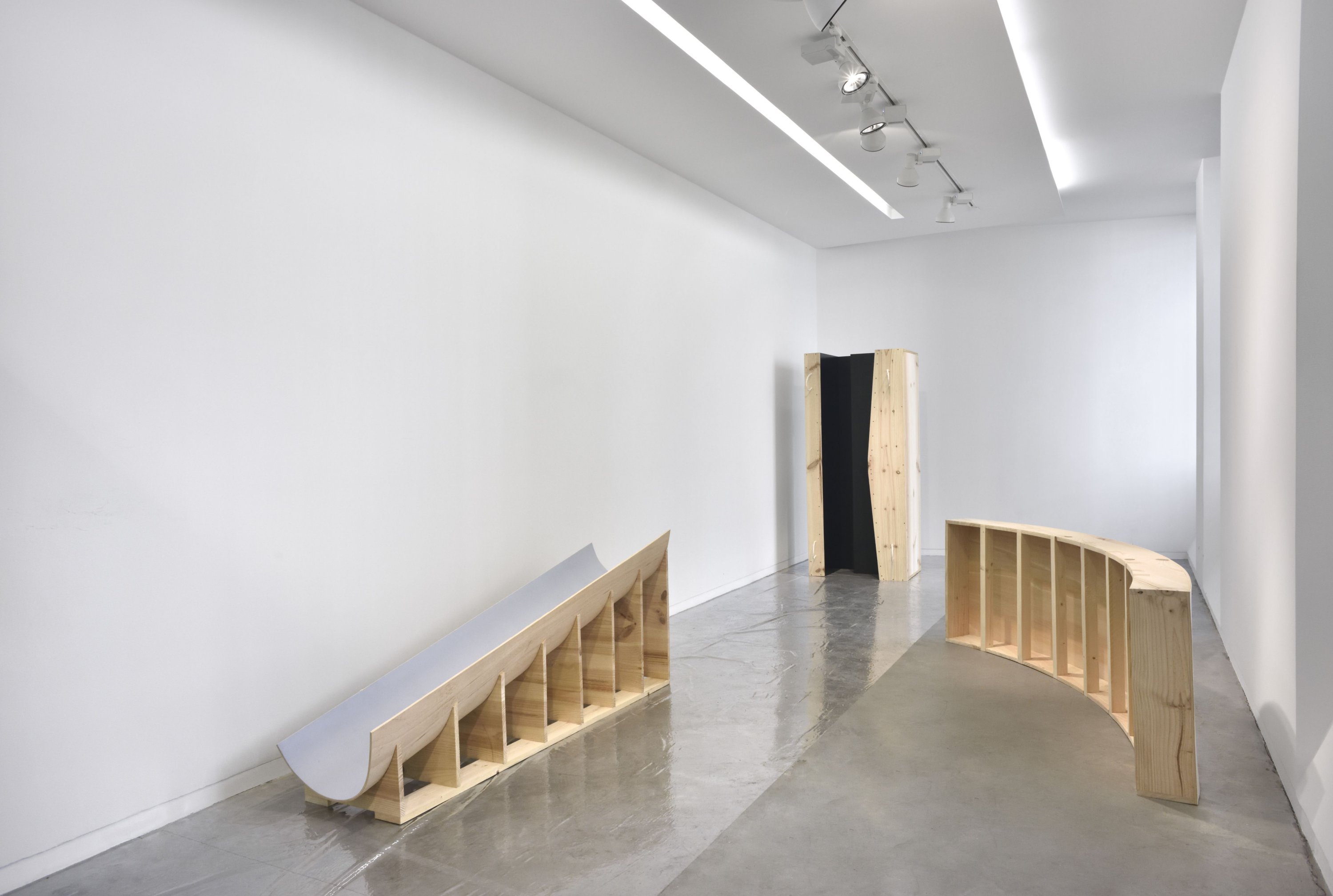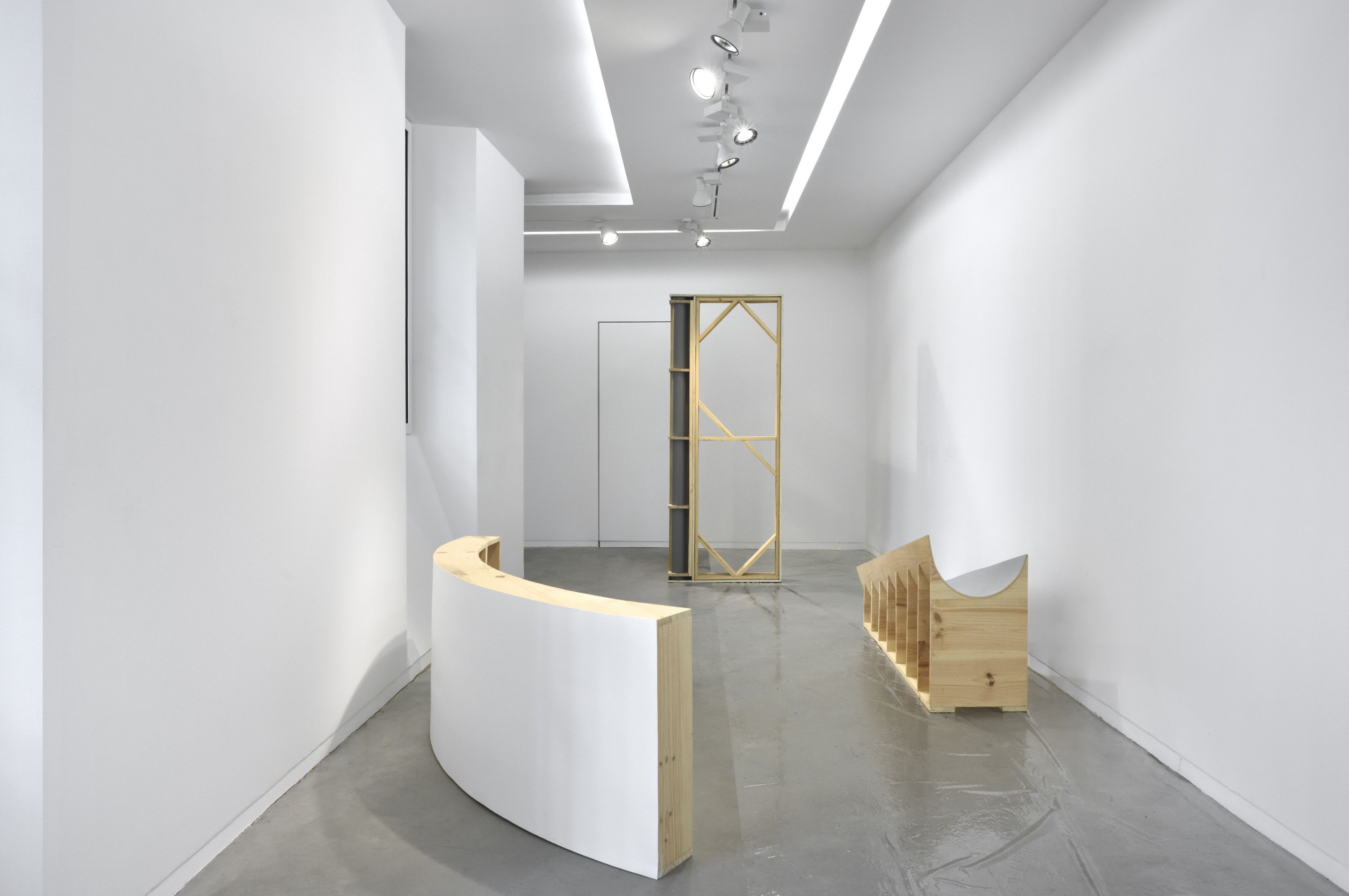 En 2012, avec « Protection », il recouvre un mur qui n’en avait aucunement besoin, d’une bâche renforcée, et laisse les traces et débris du montage de cette toile plastique créer d’eux-mêmes des motifs simples rappelant au passage ceux de la fresque. En 2015, il produit « Ouverture » et utilise un passage préexistant dans l’espace de la Galerie Éric Mouchet qu’il recouvre de contre-plaqué filmé, calé par des tasseaux de bois sans aucune fixation. Il nous laisse croire volontairement que cette installation soutient l’ouverture alors qu’en réalité c’est l’ouverture qui soutient, toute en tension, son installation.